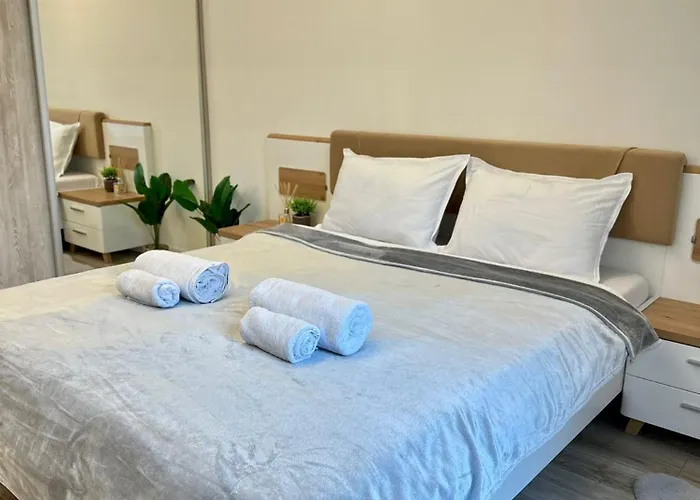 Eine voll ausgestattete Küchenzeile mit einer Mikrowelle, einem Wasserkocher und einem Kühlschrank gehört zur Ausstattung dieses Apartments für Selbstversorger. Für einen bequemen und entspannenden Aufenthalt in diesem Apartment stehen den Gästen Ausstattung zur Kaffee- & Teezubereitung zur Verfügung. Zu den Restaurants Motor Rock Bistro und Carrousel mit sind es ca. 8 Gehminuten. Die nächstgelegene Bushaltestelle Uzinei Electrice befindet sich in 250 Meter Entfernung zu dieser Unterkunft.